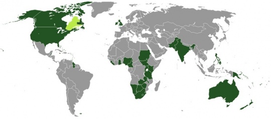 نقشه کشورهای انگلیسیزبان دنیا