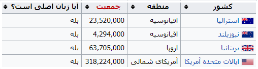 جدول کشورهای انگلیسیزبان